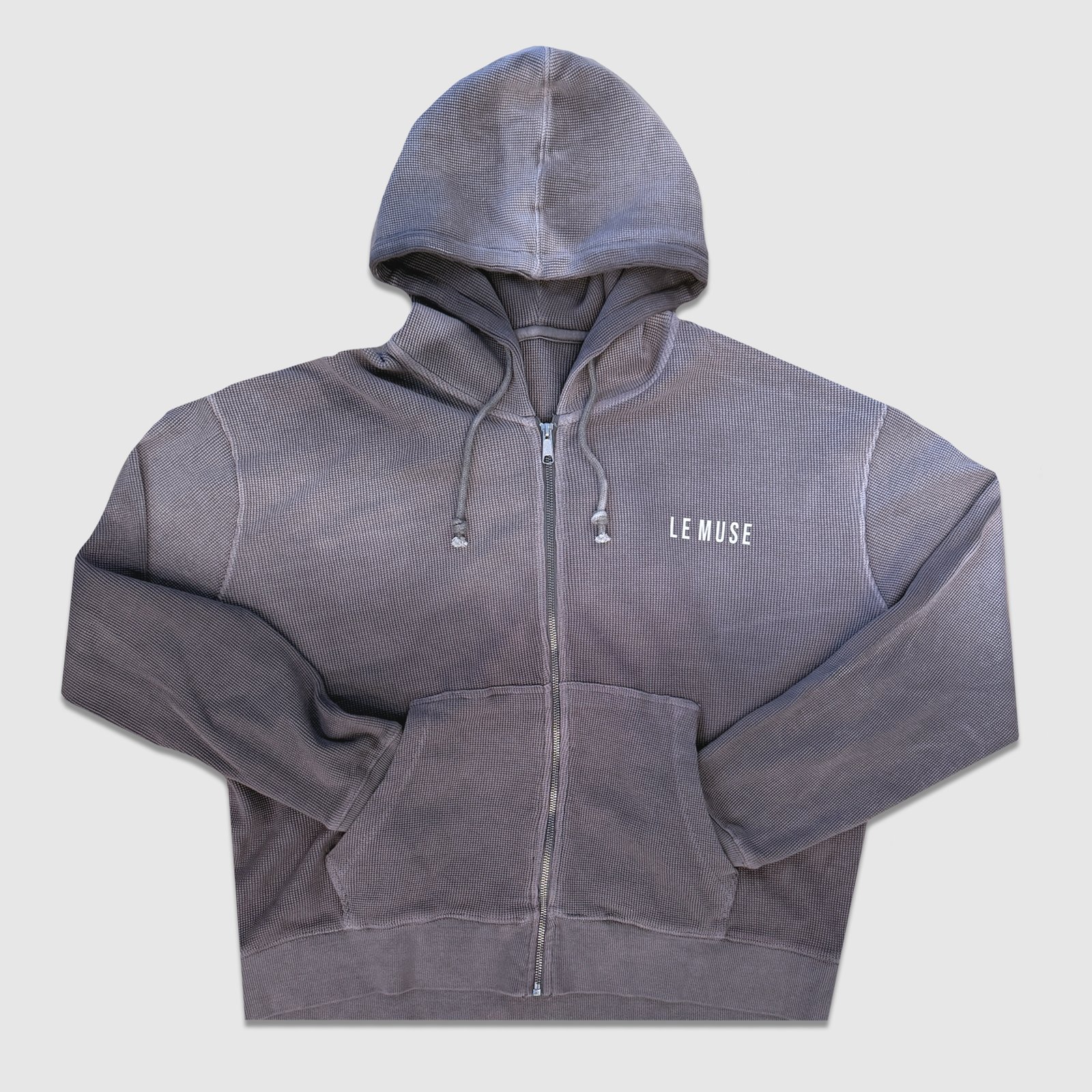 LE MUSE LOGO WAFFLE ZIP UP-CEMENT GRAY (PREORDER)